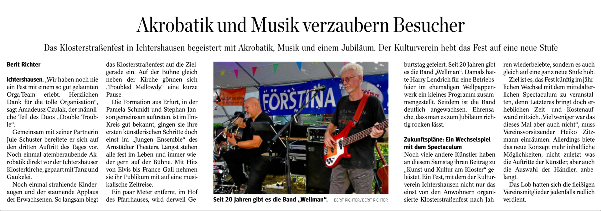 wir möchten uns noch einmal recht herzlich bei den Veranstaltern / Organisatoren und den Gästen des Ichtershäuser - Klosterstraßenfest 2025 bedanken. Ichtershausen, Ihr wart klasse. Schön, dass wir mit Euch zusammen unser 20- Jähriges Jubiläum feiern durften!